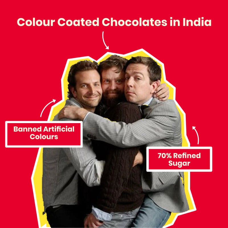Skinny Buttons for instance, our colour coated chocolates replaces harmful artificial colours with natural plant based colours. However, it has added sugar in it. This is because our Sugar Free sweetener is not recommended for children below 12.