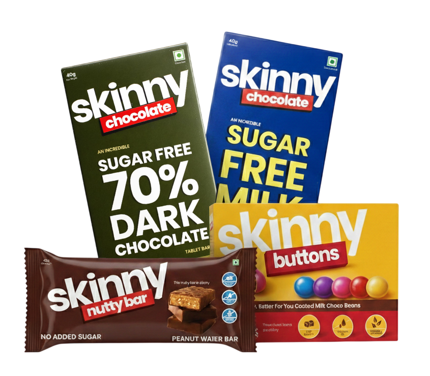 Chocolate treats minus the extras - no added sugar, no palm oil, no maida. Say goodbye to bloated chocolates and switch to Skinny today.
